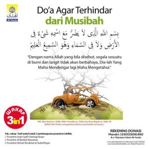 Salah satu dzikir atau doa yang sering dibaca pada pagi dan petang yaitu: بِسْمِ اللَّهِ الَّذِى لاَ يَضُرُّ مَعَ اسْمِهِ شَىْءٌ فِى الأَرْضِ وَلاَ فِى
