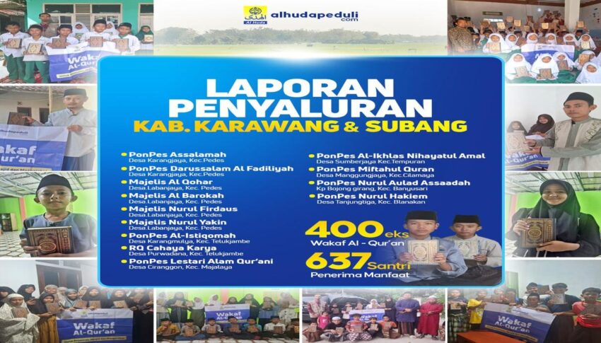 Peduli telah menyalurkan amanah para donatur berupa mushaf Al-Qur’an ke berbagai Pesantren, Majelis, dan Rumah Qur’an di daerah Kabupaten Karawang dan Subang.